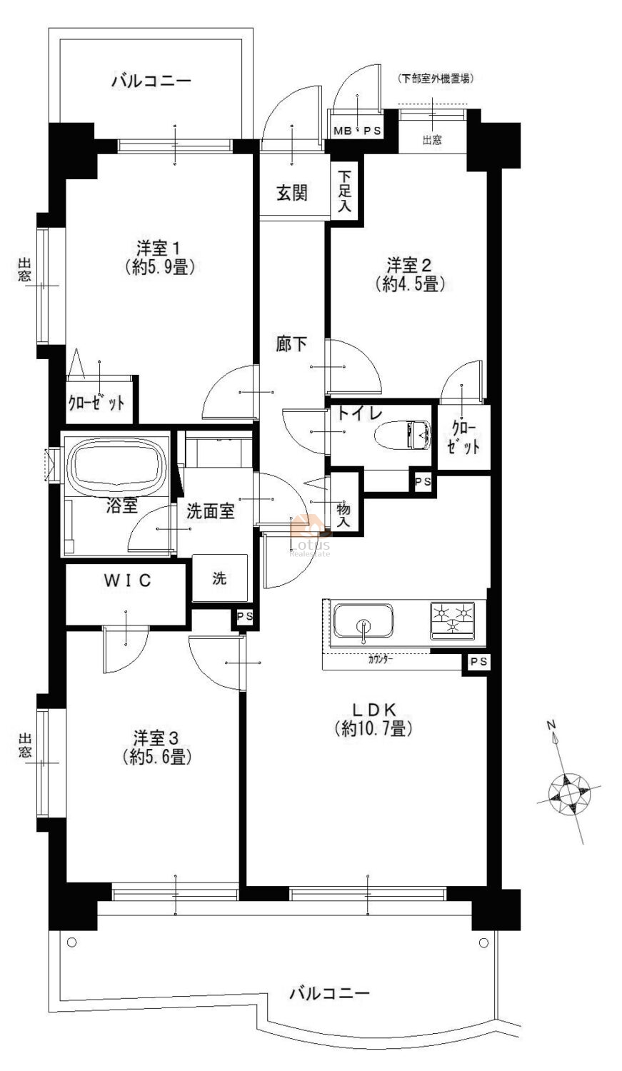 | 面積 | 60.45m² 壁芯(バルコニー14.19m²) | |||