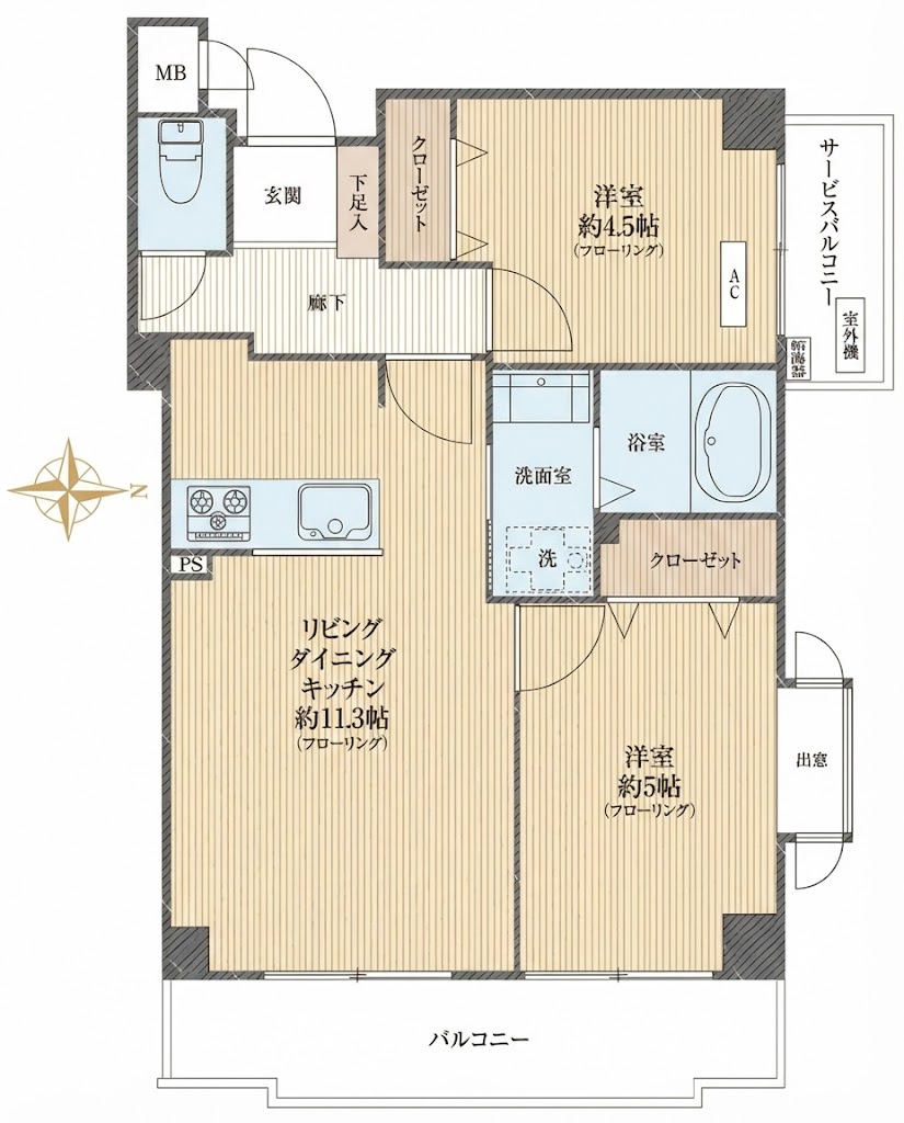 グリュック8二子玉川イーストウィング 2F 2LDK 51.78㎡