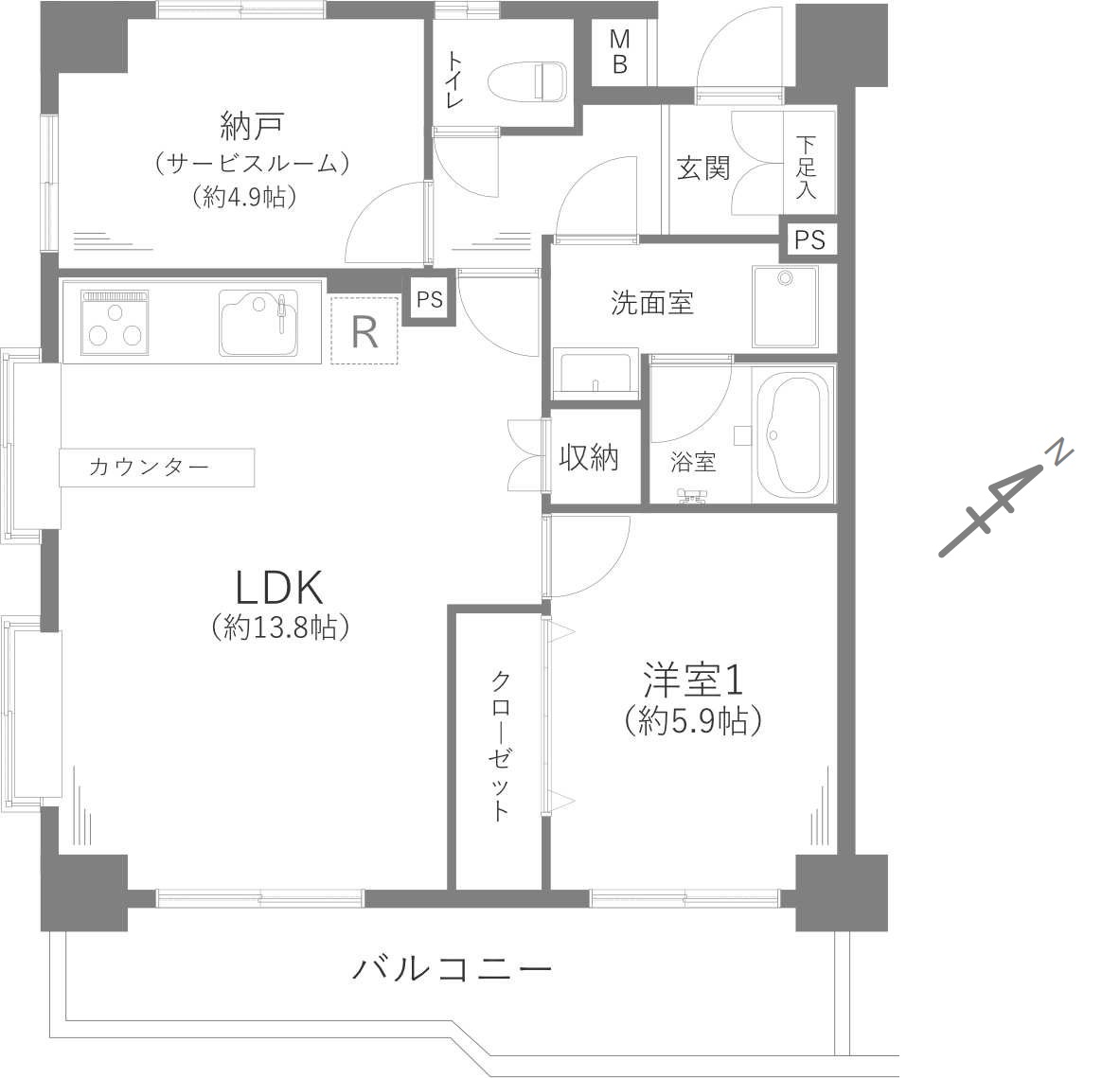| 面積 | 56.97m² (バルコニー9.64m²) | |||