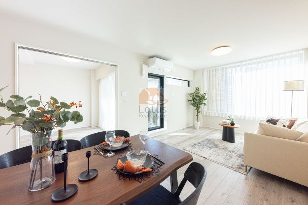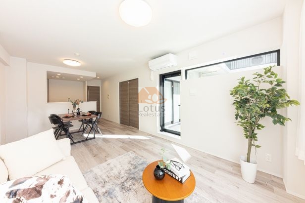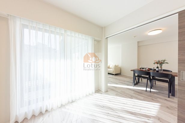 2012年築の比較的新しい建物にフルリノベーションを施し、新築同様の心地よさを実現。南西向きの陽光が差し込むリビングは、家族の笑顔をより一層明るく照らし出します。