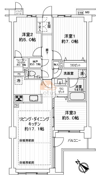| 面積 | 75.7m² 壁芯(バルコニー4.12m²) | |||