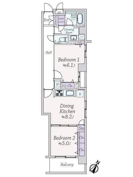 プレジール日本橋人形町 2F 2DK 52.67㎡
