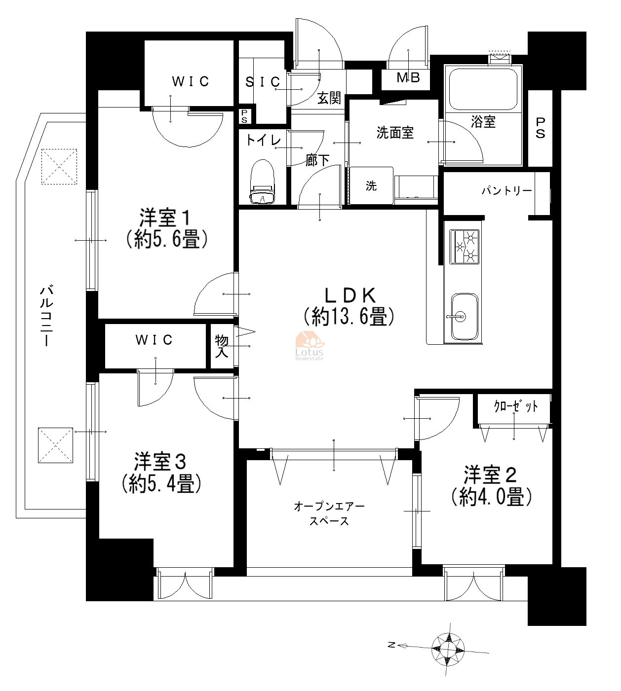 | 面積 | 65.6m² 壁芯(バルコニー11.2m²) | |||
