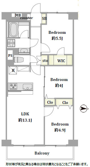 | 面積 | 61.6m² (バルコニー4.86m²) | |||