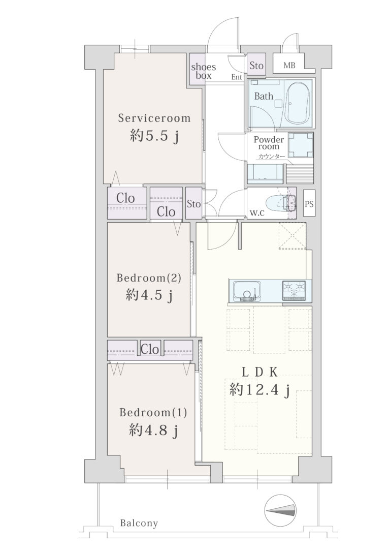 | 面積 | 61.6m² (バルコニー7.72m²) | |||
