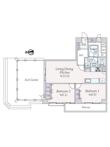 リノベーションにより洗練された2LDKは、設備の不具合に悩みたくない方の期待に応えます。最上階ならではの開放感と静寂が、都会のストレスから住人を解放します。
