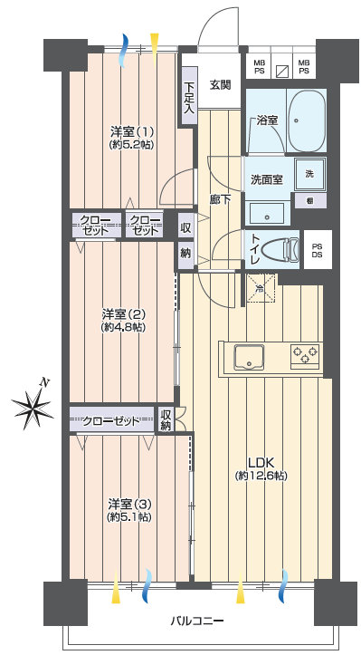 | 面積 | 63.98m² (バルコニー7.69m²) | |||