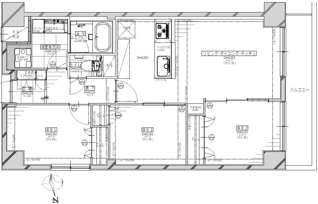 | 面積 | 61.35m² (バルコニー6.72m²) | |||