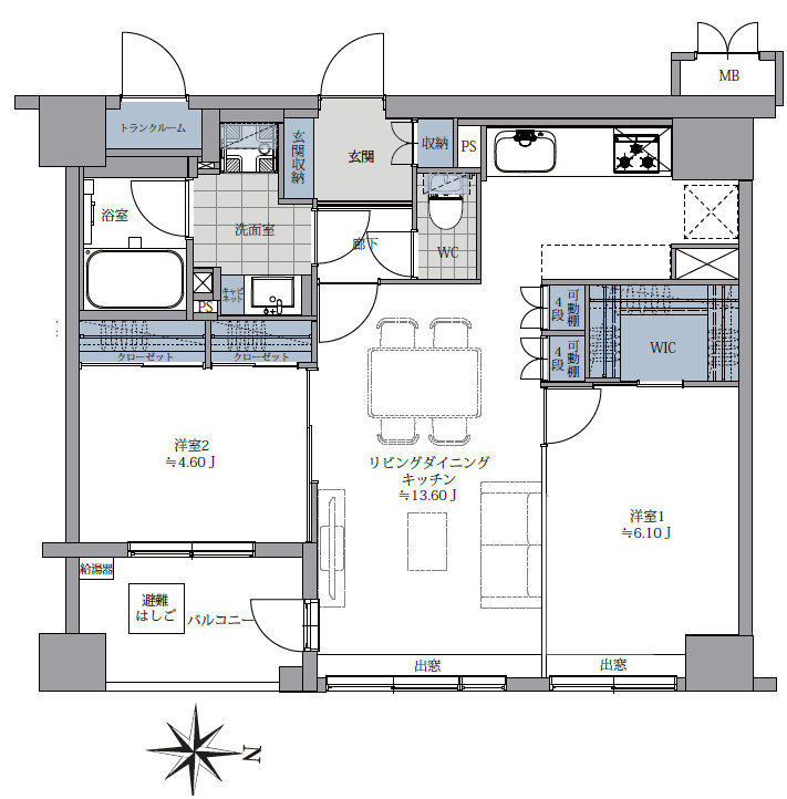全居室がリノベーション済みで、ウォークインクローゼットやトランクルームなど収納設備が非常に充実しています。荷物の多い世帯でも部屋をすっきりと保つことができ、洗練された空間で心地よく過ごしたいという願いを叶える住まいです。