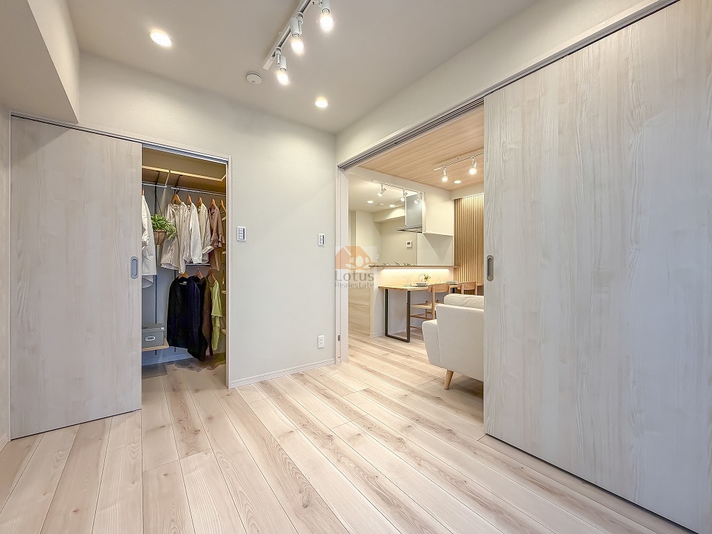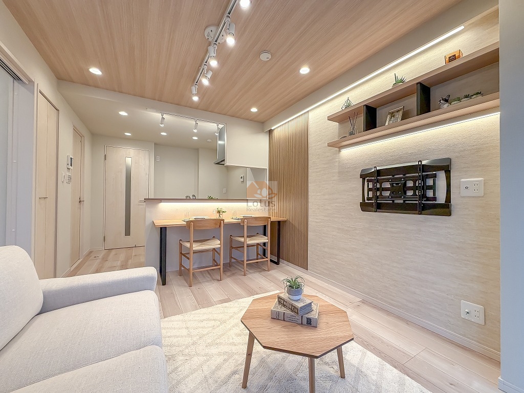 新規フルリノベーションにより、使い勝手の悪かった古い間取りを現代風に改善しました。特に収納スペースが充実しており、散らかりがちな荷物をしっかり収めて、いつでもゲストを呼べるスッキリとした空間を維持できます。