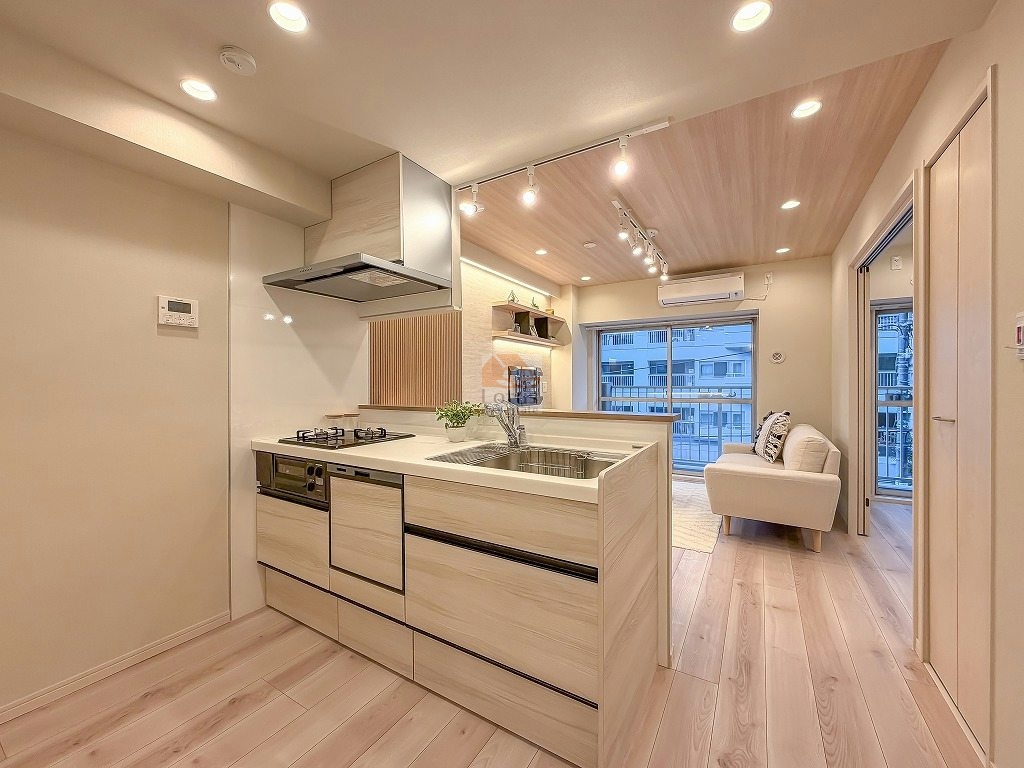 リノベーション:フローリング、クロス、洗面、トイレ、キッチン、ユニットバス、建具、新規エアコン設置1台(2026年1月23日完成)