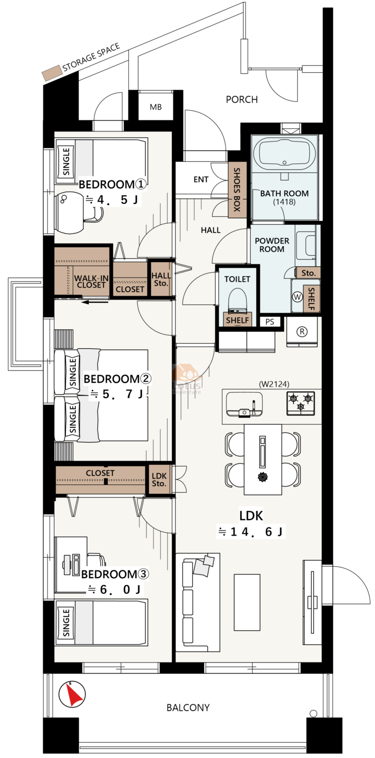 | 面積 | 68.31m² 壁芯(バルコニーm²) | |||