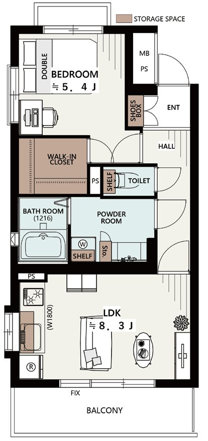 収納不足でお部屋が片付かない悩みを、新設されたウォークインクローゼットが解決します。大型の荷物も一箇所にまとめられるため、居室部分は家具を最小限に抑えたミニマルな生活が可能です。
