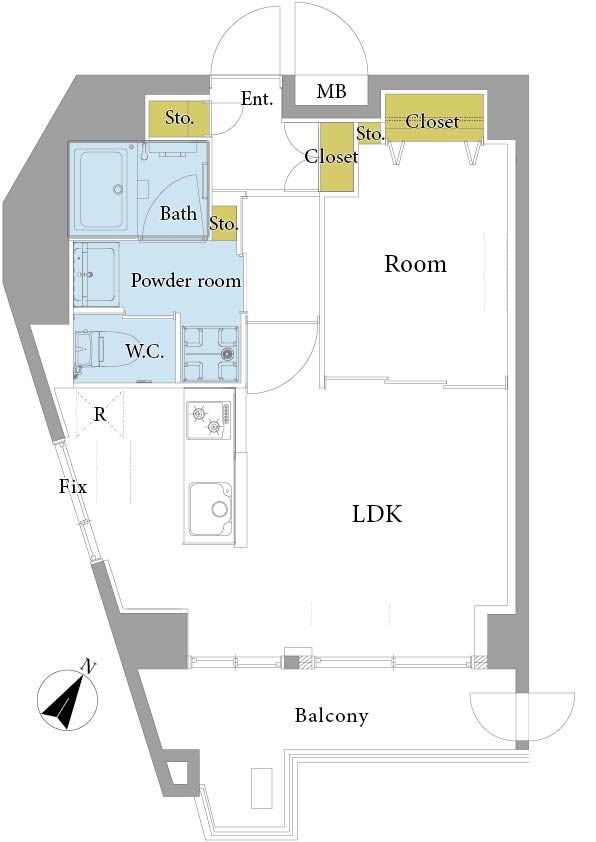居室をスッキリと見せたい方の要望に応え、クローゼットに加え計3箇所の収納(Sto.)を配置しました。掃除機や日用品を適切に隠せるため、リビングを整然と保ち、急な来客時も慌てる必要がありません。