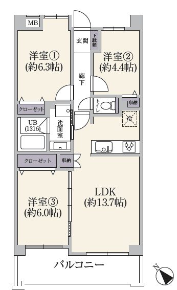 | 面積 | 64.52m² (バルコニー9.75m²) | |||