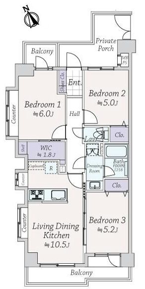| 面積 | 62.06m² (バルコニー9.41m²) | |||