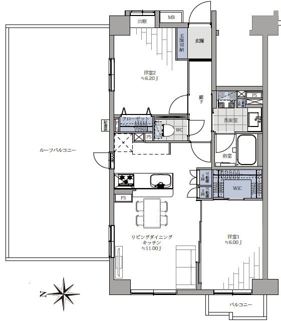 | 面積 | 56.8m² (バルコニーm²) | |||
