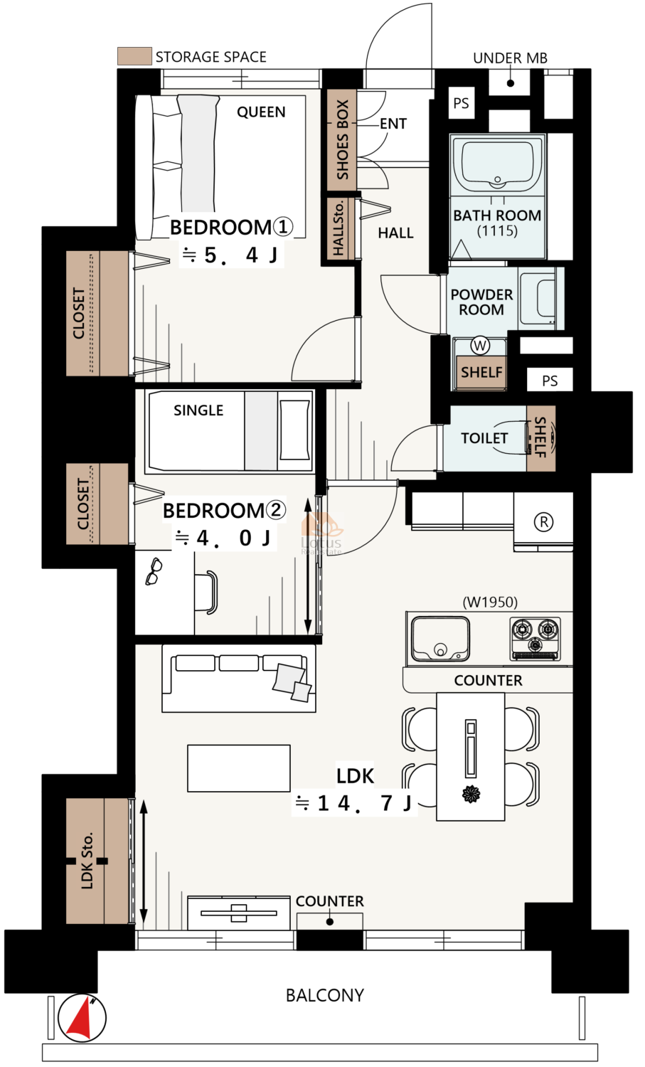 | 面積 | 54.1m² 壁芯(バルコニーm²) | |||