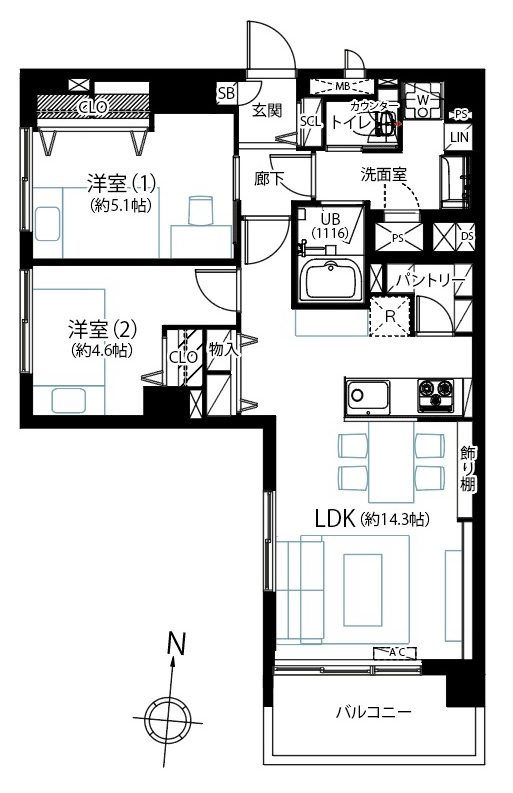 | 面積 | 59.2m² (バルコニー3.3m²) | |||