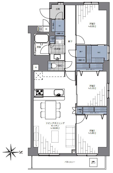 | 面積 | 80.36m² (バルコニー6.98m²) | |||