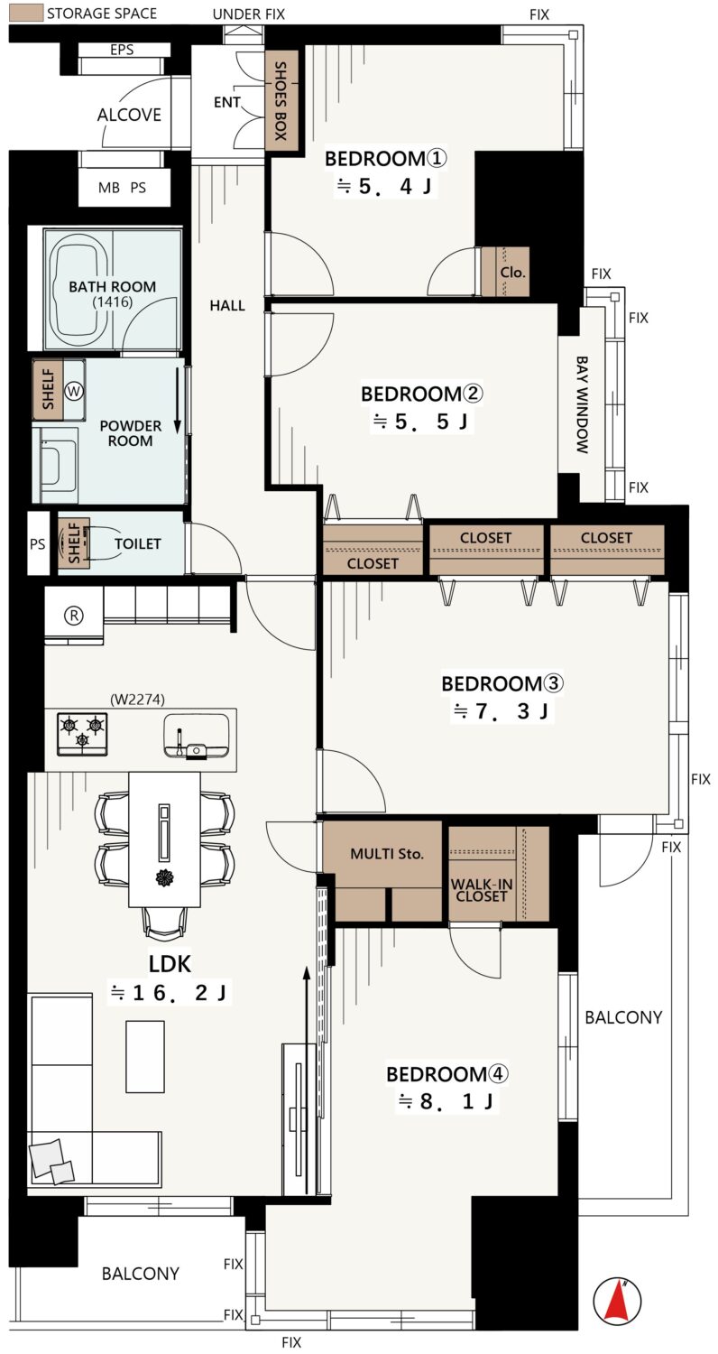 下町情緒と大規模商業施設の利便性を享受したい子育て世帯へ向けた提案です。95㎡超という広大な4LDKは、子供の成長に伴う部屋不足や、収納スペースの枯渇という切実な悩みを根本から解決します。
