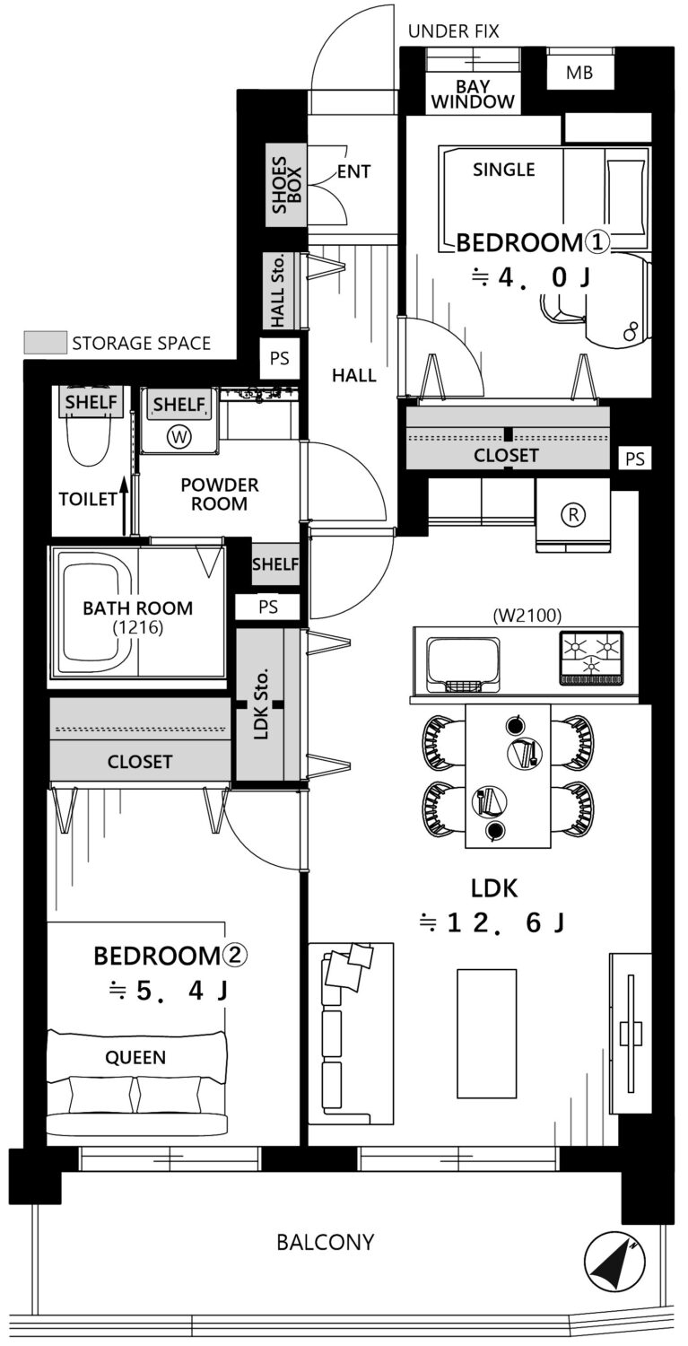 | 面積 | 53.95m² 壁芯(バルコニー8.68m²) | |||