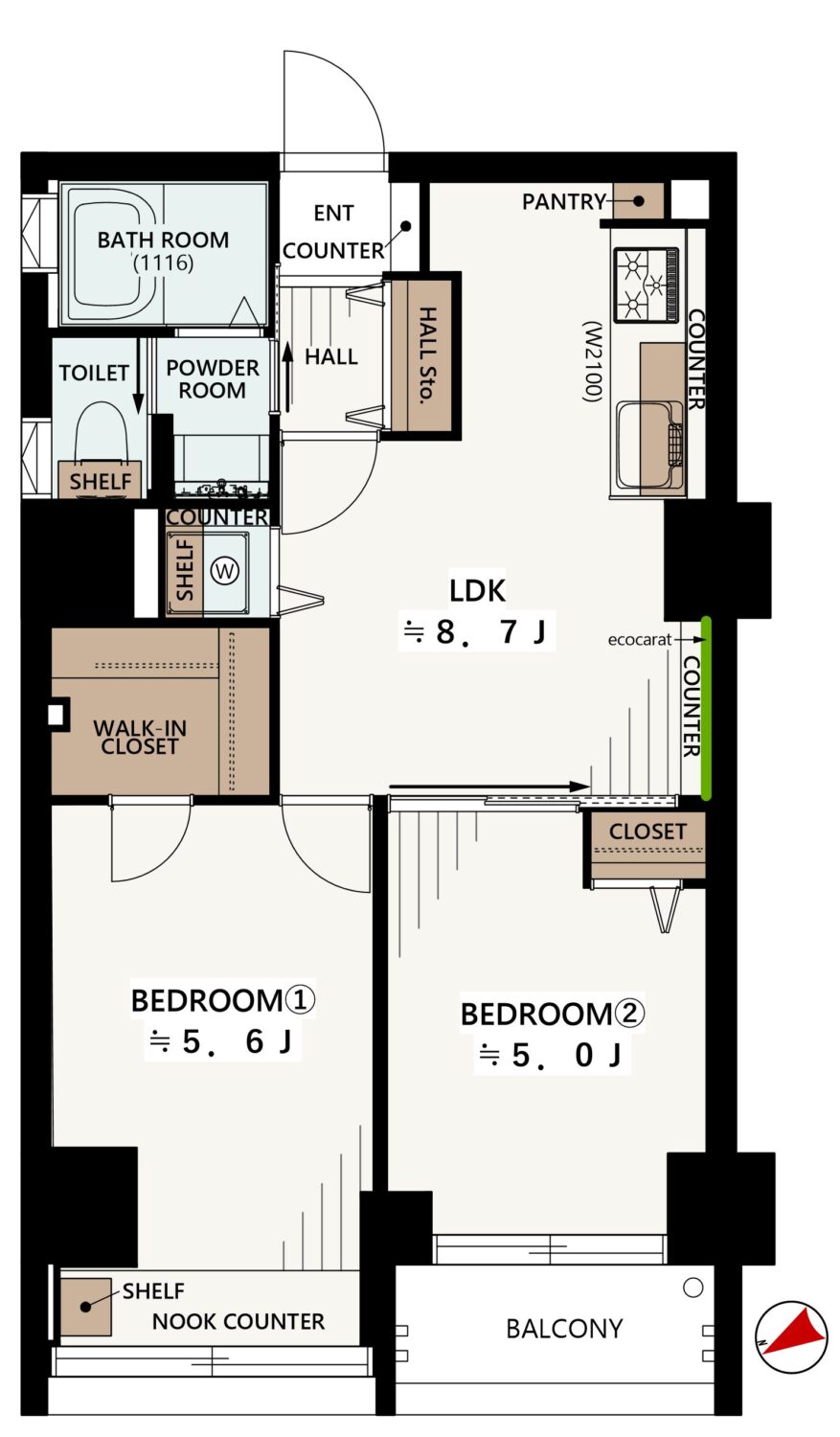 室内の大容量ウォークインクローゼットやヌックカウンターは 、限られた面積の中でも自分だけの居場所と整った空間を両立させてくれます。リモートワークや読書に集中できるコーナーがあることで、自宅での時間がより質高く、充実したものへと変わっていくはずです 。