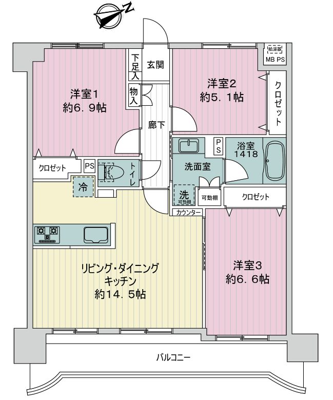 ライオンズガーデン東向島 9F 3LDK 72.68㎡