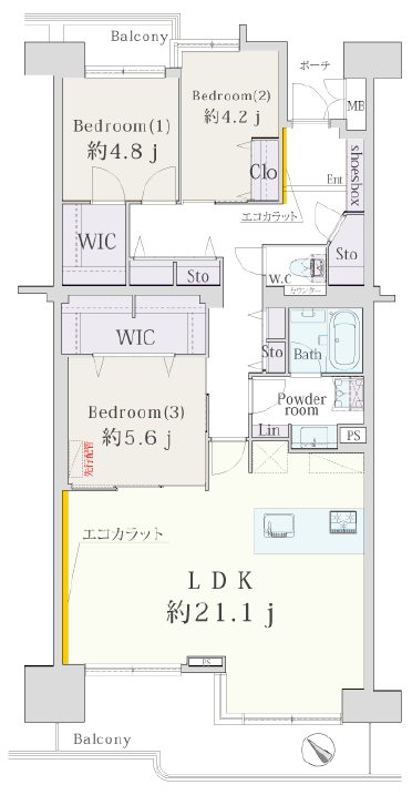 | 面積 | 93.15m² (バルコニー15.47m²) | |||