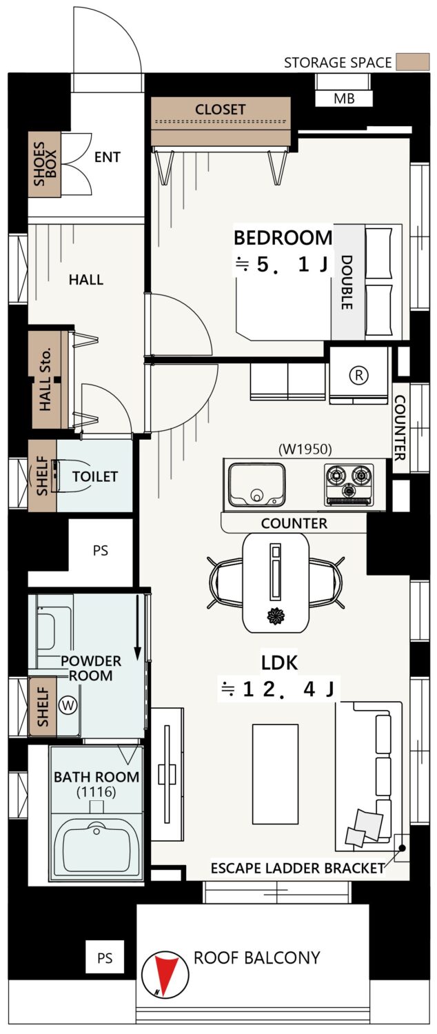 開口部が多く風通し良好な4階のお部屋は、室内の空気の淀みや不快な湿気に悩む方を、清々しい空気感で包み込みます。窓から入る光と風が、お気に入りの家具を美しく照らし、理想の自分を叶える空間を作ります。