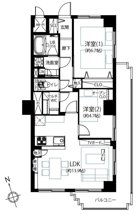 | 間取 | 2LDK 6階 南西 |