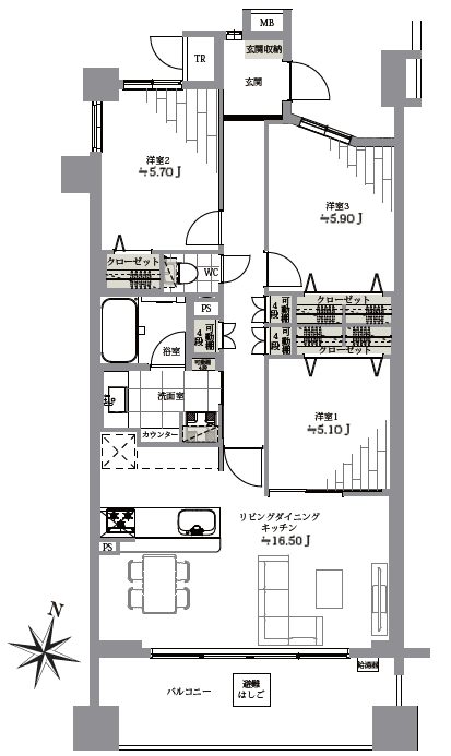 | 間取 | 3LDK 5階 |