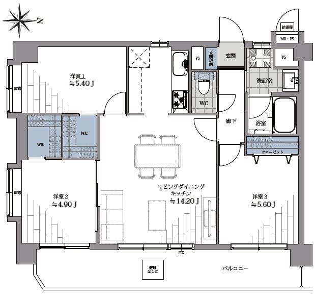 | 面積 | 66.03m² (バルコニー12.29m²) | |||