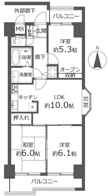 | 面積 | 59.95m² (バルコニー10.01m²) | |||