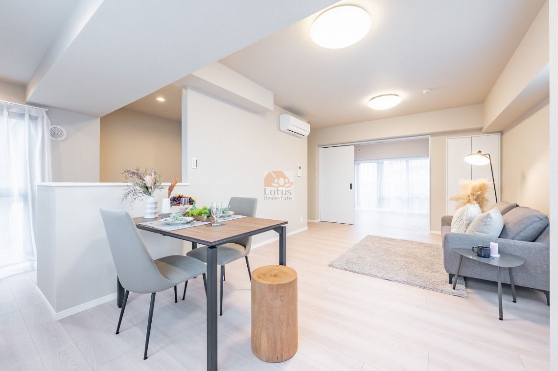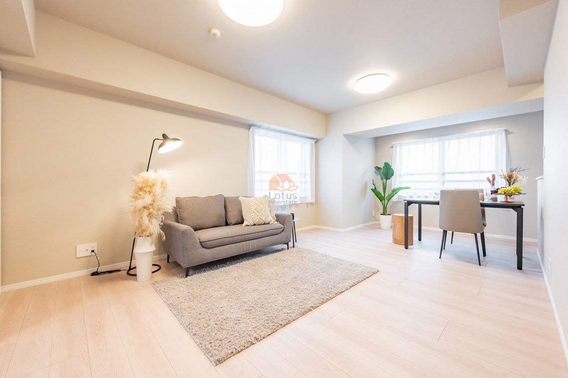 9階部分の南東・北西の角住戸で、日当たりと風通しが非常に良く、開放感に満ちた暮らしが叶います。新規リノベーションにより水回り設備が刷新されており、古さを感じさせない清潔感あふれる住空間が広がります。