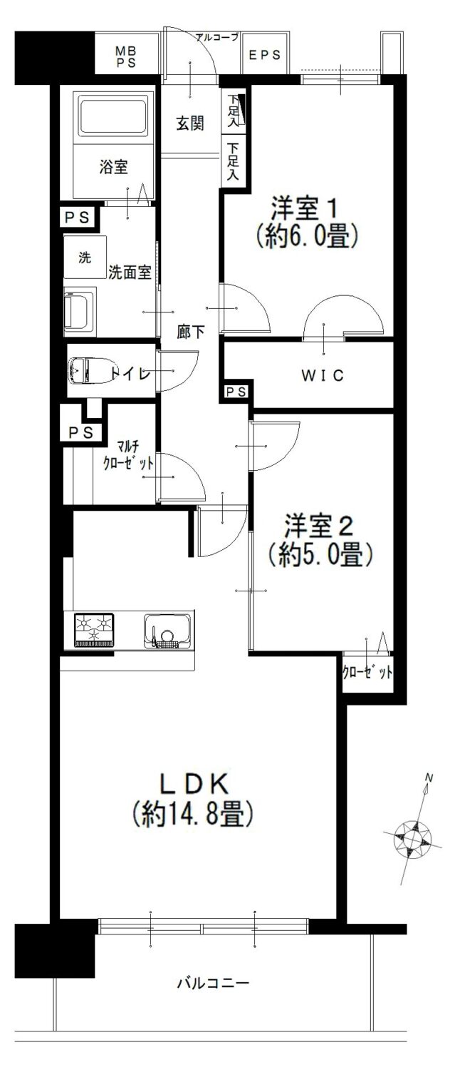 | 面積 | 62.98m² 壁芯(バルコニー7.6m²) | |||