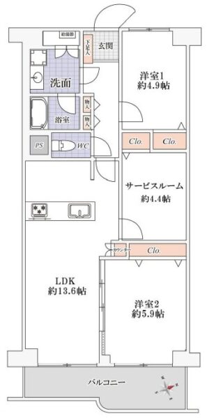 | 面積 | 64.4m² (バルコニー7.6m²) | |||