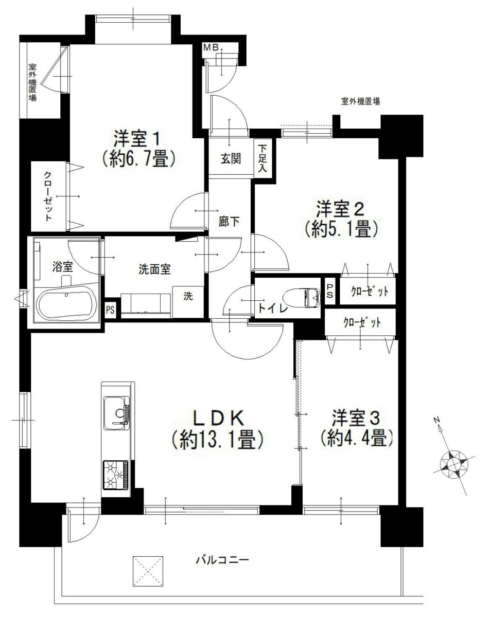 | 面積 | 63.28m² 壁芯(バルコニー13.41m²) | |||