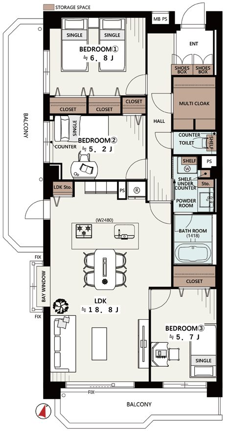 | 間取 | 3LDK 5階 南 |