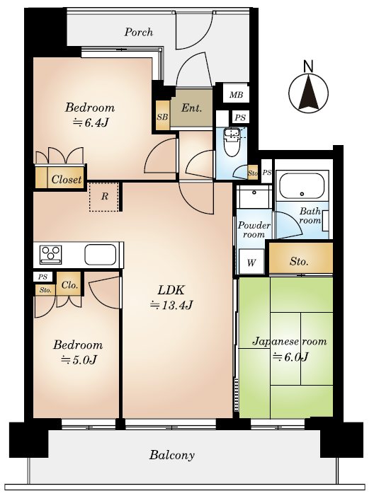 | 面積 | 63.84m² 壁芯(バルコニー11.55m²) | |||