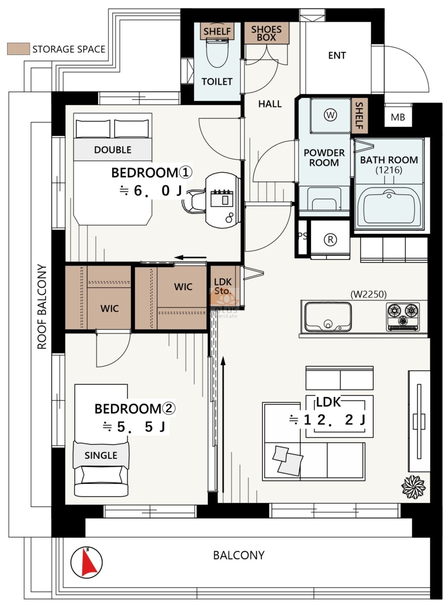 リノベーションで一新された対面キッチンは、料理をしながら家族や友人との会話を自然に楽しめます。2つのウォークインクローゼットが収納の悩みを一掃し、お部屋を常にすっきりと広く保つことを可能にします。