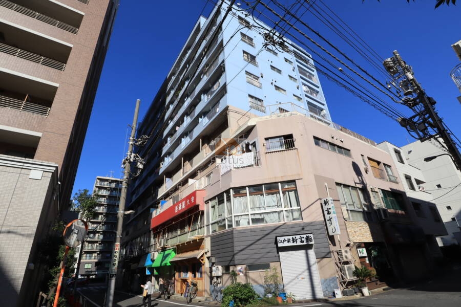 管理は合人社の全部委託(日勤)、エレベーター完備で、ペット飼育可・事務所利用可(規約等要確認)により下町の駅前で住居やSOHOとして柔軟に使える。