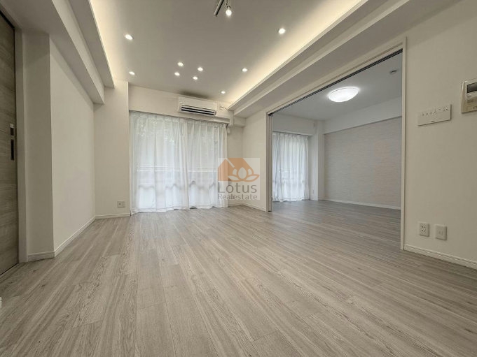 1階の西向き住戸で、各居室6帖以上のゆとりある2LDKに、デザイナー監修のフルリノベーションが施されたお部屋。 食洗機付きキッチンや浴室乾燥機、間接照明など、設備・内装ともに質の高い仕様が揃い、即入居も可能な内容です。