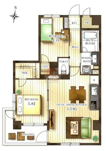 | 2024/7 | 4階 | 約57㎡ | @49.84 | @39.5 | @27 | |