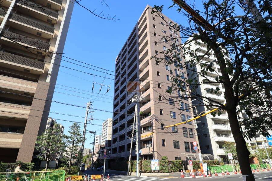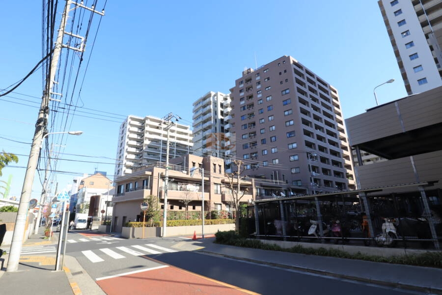 1997年築、15階建ての中高層マンション。外壁はタイル貼りで、共用部分にはオートロックと宅配ボックスを設置。基本的な安心設備が揃っています。