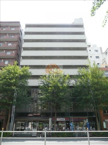 靖国通り沿いに佇む外観は、築年数を重ねながらも丁寧に維持され、落ち着いた存在感を放っています。10階建てのスリムなフォルムが、都市景観と程よく調和しています。