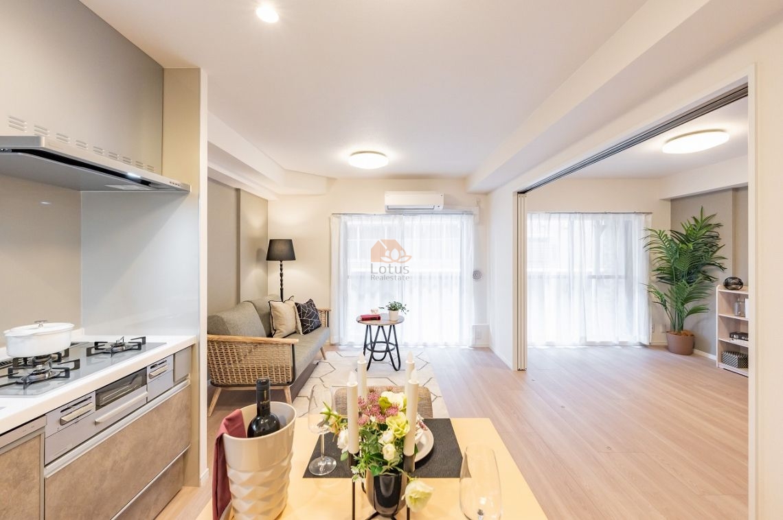 7階南向きで日当たり良好、フルリノベーション済みの1SLDK住戸。食洗機・浴室乾燥機・ウォークインクロゼット付きで、機能性と快適さを兼ね備えた住まいです。