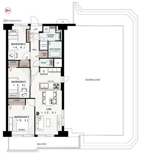 ・「五反野第三スカイハイツ」は大型ルーフバルコニー付きが特徴です。