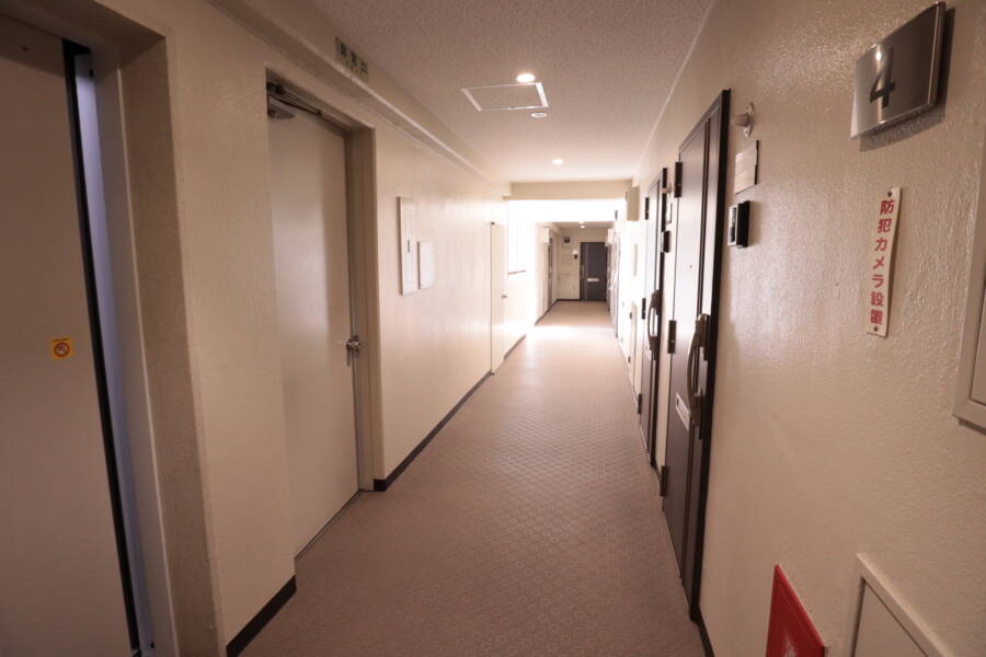 管理は全部委託、通勤管理で、エントランスはきちんと清掃され、ロビーのような落ち着いた雰囲気があります。防犯カメラやエレベーターも備えており、安心して暮らせる環境です。